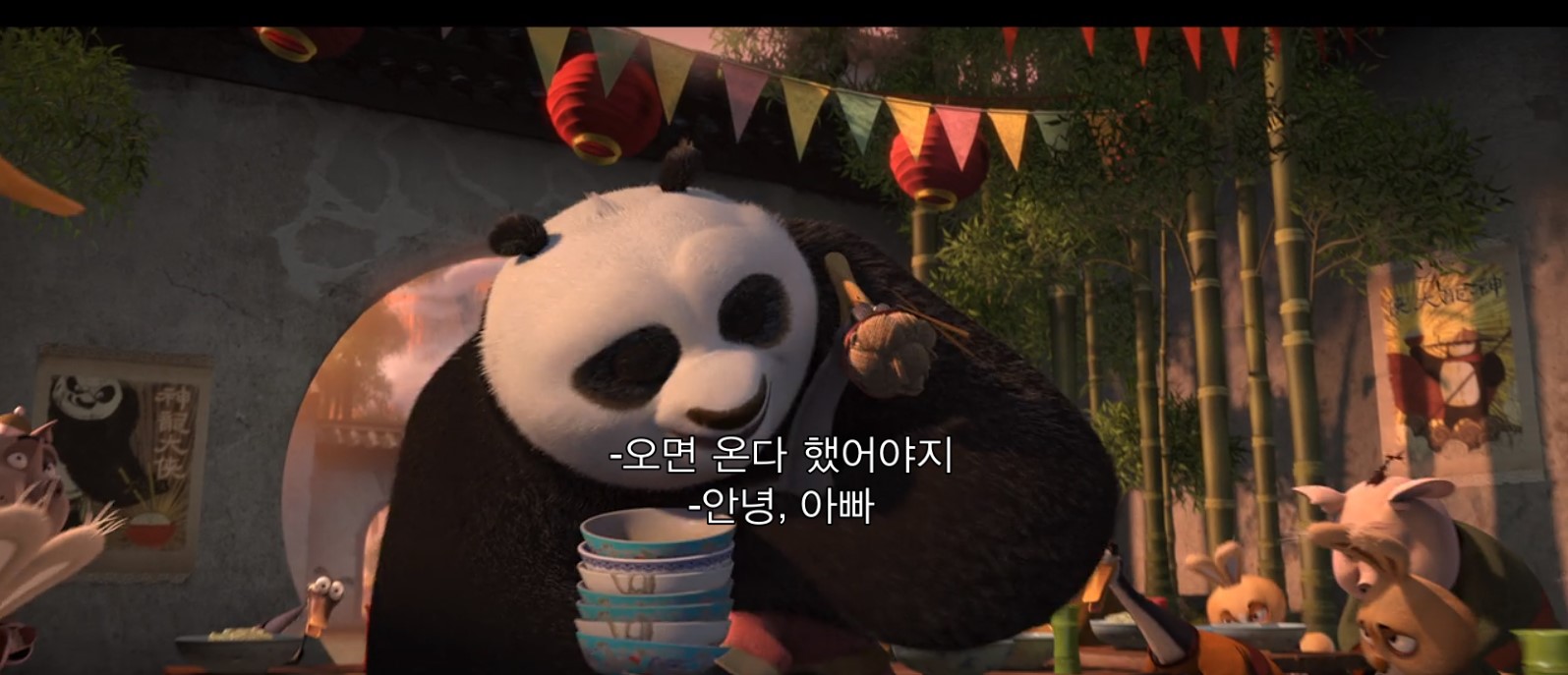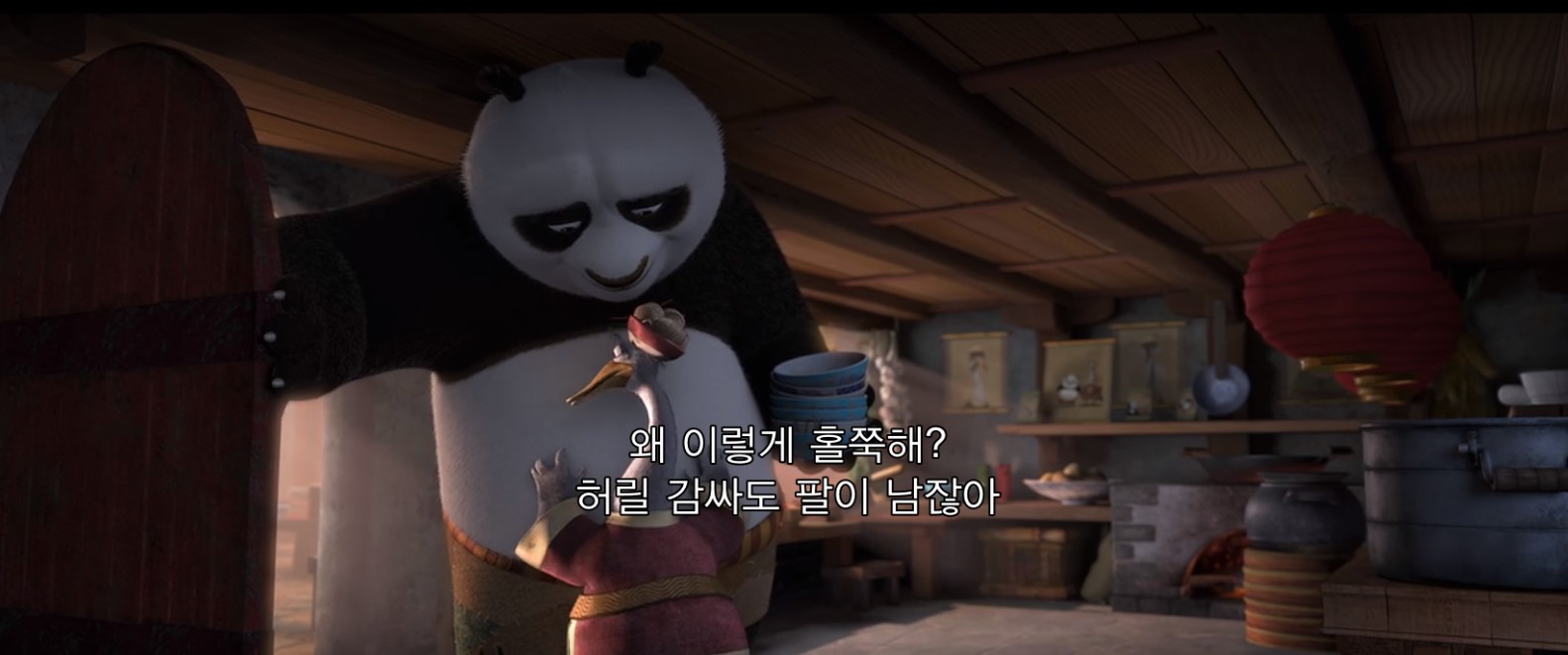 일단 포와 포의 아빠가 오랜만에 만난 상황부터 살펴보겠습니다. 포가 연락도 없이 아빠의 가게를 찾아왔습니다.