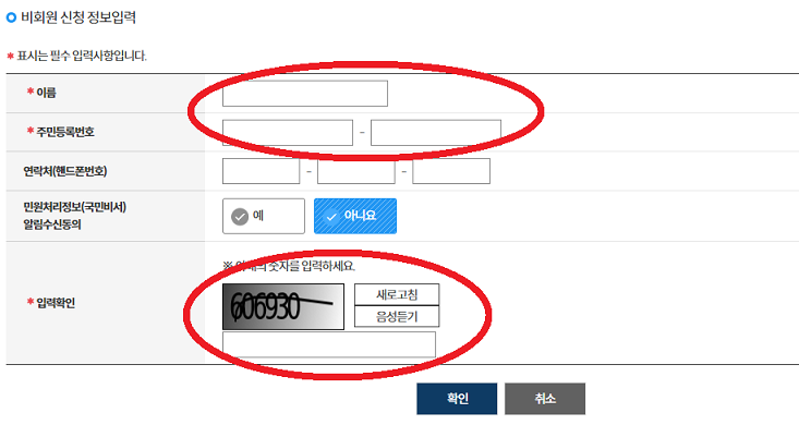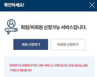 3. 회원/비회원 중에 선택합니다. 카카오톡/네이버/공인인증서 등을 통해 본인인증을 거친다면 비회원 신청하기도 가능합니다. 비회원으로 진행해 보겠습니다.