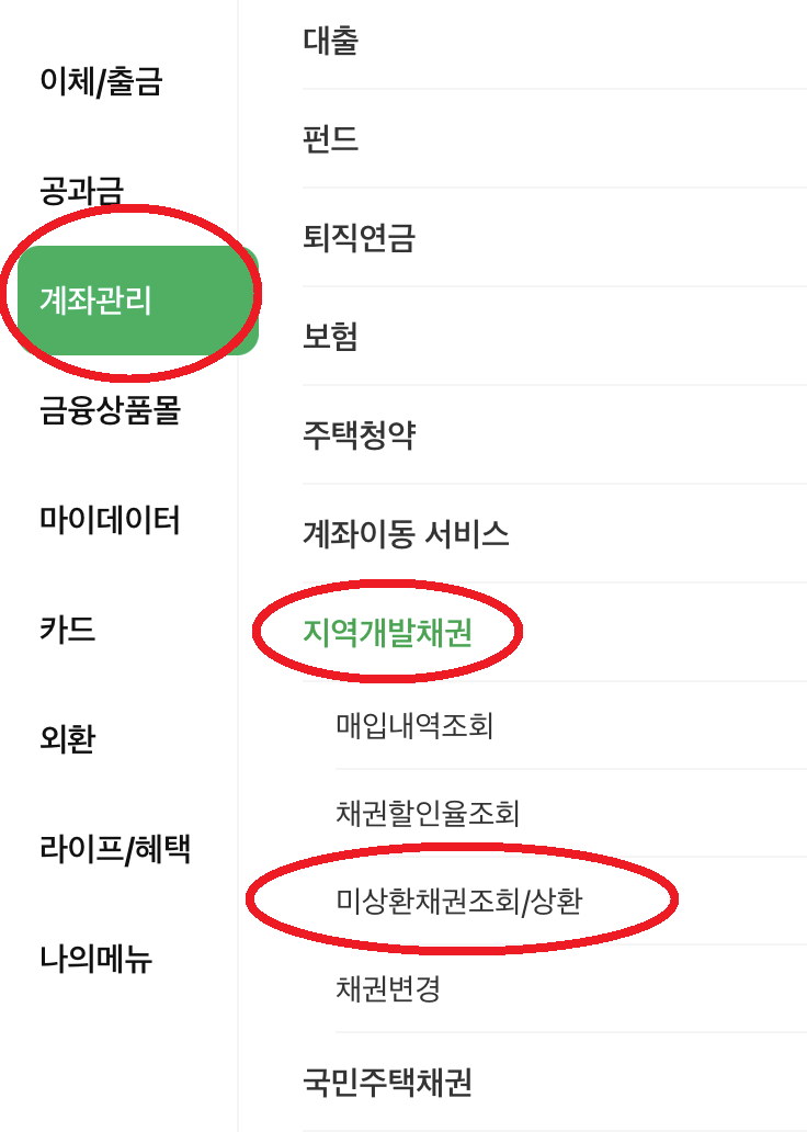 2. 계좌관리에서 지역개발채권을 들어갑니다.