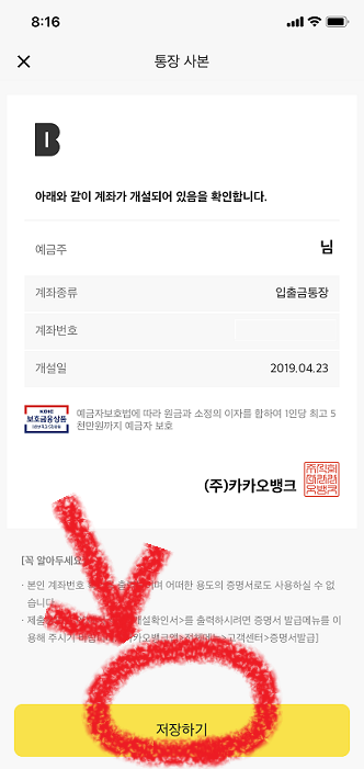 5. 저장하기를 누릅니다. 이미지 저장하기를 하면 갤러리에 자동으로 저장이 됩니다.