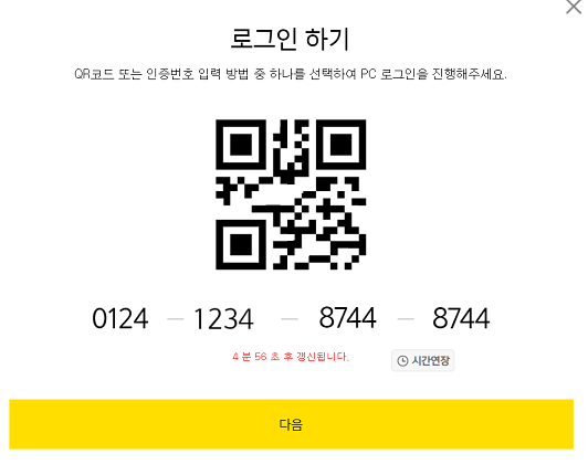 4. QR 코드로그인을 누른 후, PC 화면의 QR 코드를 스캔해 주세요. 만약 스캔이 안된다면 인증번호 로그인을 누른 후 컴퓨터 화면에 떠 있는 숫자를 스마트폰에 직접 입력하면 됩니다.