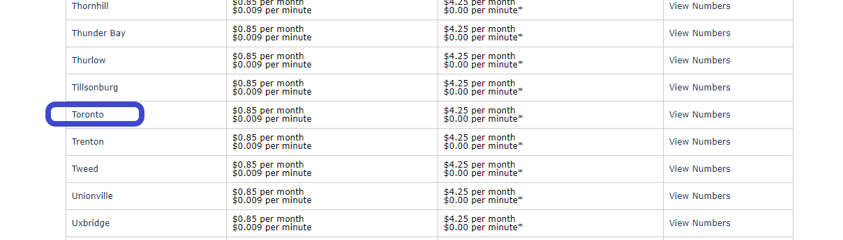 저희는 캐나다 번호를 구매해야 하니까 Local Numbers에서 Canada로 들어갑니다.
