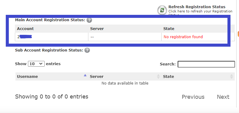 본 번호로 통화를 하려면 어플과 연결해야 하는데요, 아직 연결을 하지 않았기 때문에 No registration found가 표시됩니다.