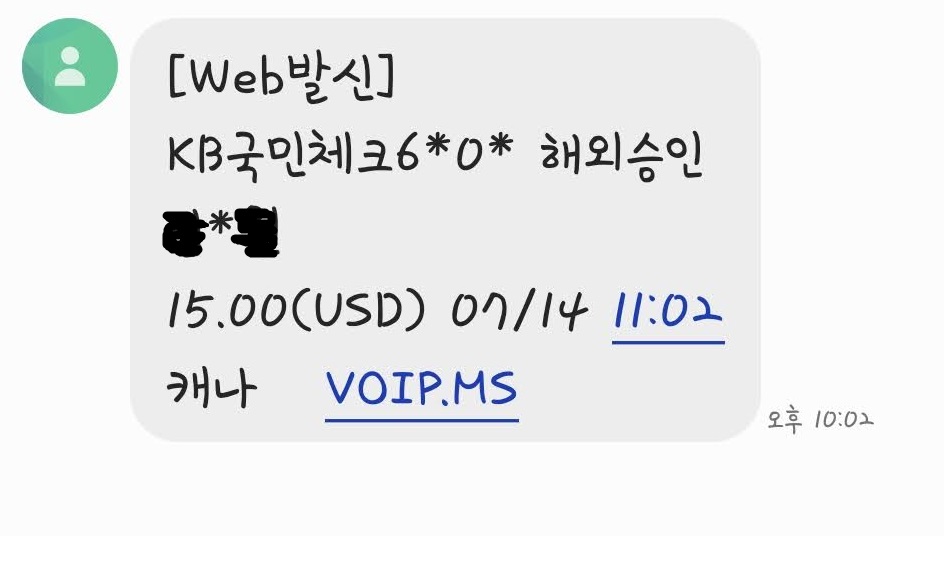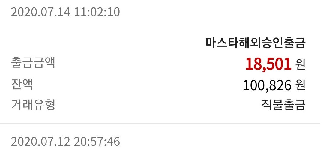 저는 체크카드를 사용해서 $15불인 18,501원이 바로 결제가 되었네요.