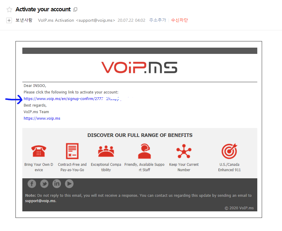 Activete your account 라는 제목으로 Voip로부터 메일이 왔네요.