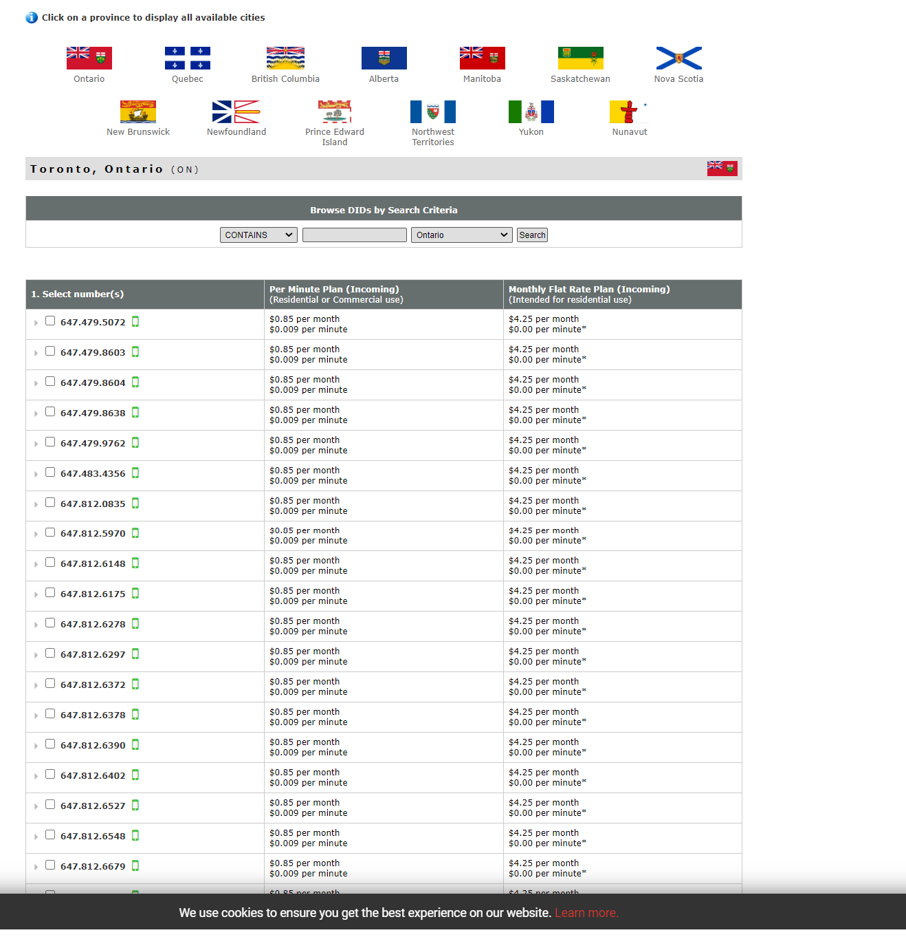 저는 토론토 번호를 구입할 예정이라 Ontario를 선택했습니다. 다른 지역분들은 맞는 province를 선택하시면 됩니다.
